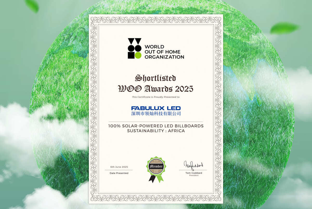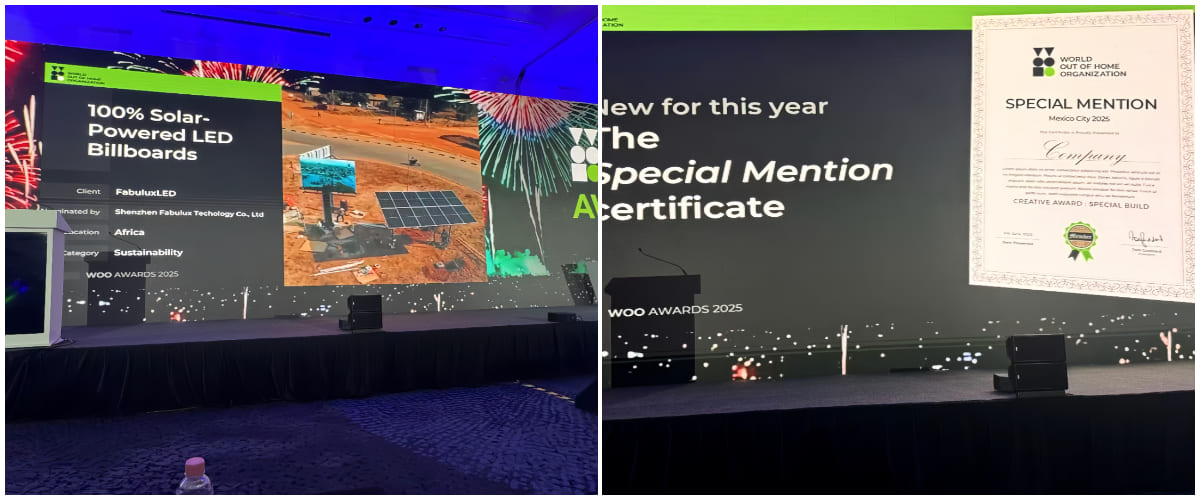 该奖项于6 月 6 日在墨西哥城举办的 WOO 年度行业大会上揭晓。 领灿“100% 太阳能驱动 LED 广告牌项目”作为非洲区域的代表性案例,凭借在推动偏远地区数字化基础设施建设方面展现的创新实践与社会价值,获得评审一致认可,荣获此奖。