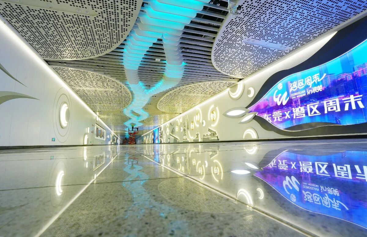 屏幕既是城市宣传片的播放载体,更是公共艺术的组成部分 —— 它让松山湖的科技活力、中心广场的文化厚度、同沙的自然之美、凤山的产业韧性得以可视化、场景化呈现,使地铁站从交通节点升级为 “城市文化客厅”。