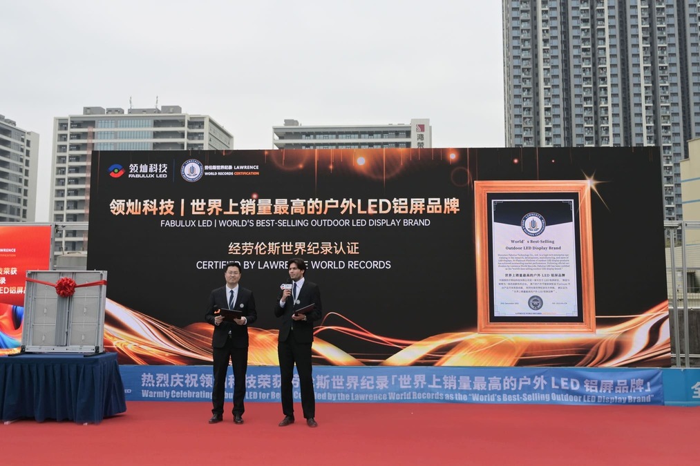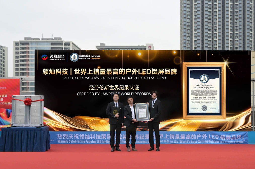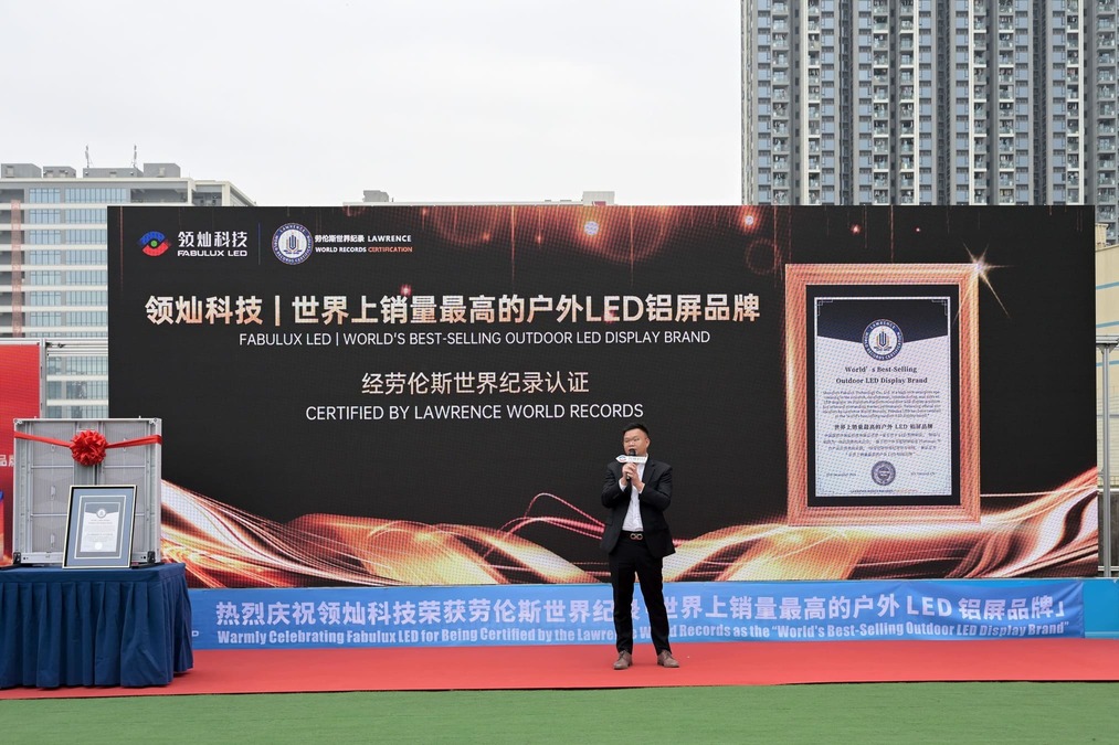 作为第三代户外铝屏的开创者,领灿科技凭借户外LED屏的出色市场表现与客观销售数据,经劳伦斯世界纪录全球审核团队严格审核与权威认定,荣获“世界上销量最高的户外LED铝屏品牌”称号,这标志着其在全球户外LED显示领域的领导地位。