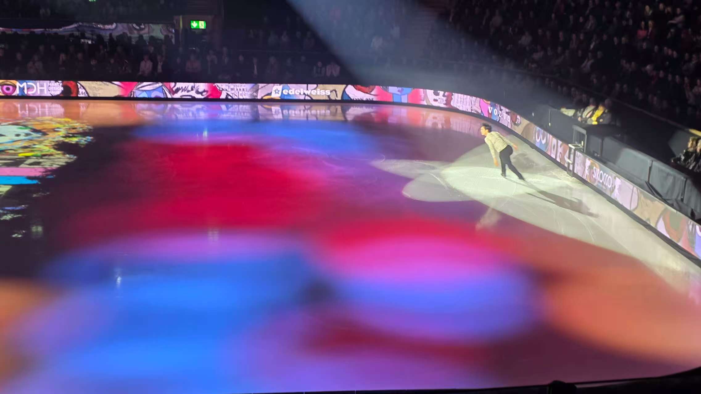 领灿科技携手合作伙伴 AVMS Schweiz 为该盛典提供了创意视觉装置。项目采用了 Master 系列 租赁屏,在冰场周围部署了长达数百米的 LED 围栏屏,并配合舞台上方动态安装的 LED 魔方屏。这一组合构建了多维度的视觉层次,使屏幕画面与选手的滑行轨迹及现场灯光秀形成了完美的艺术共振。